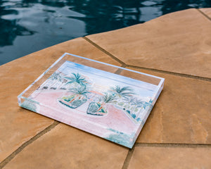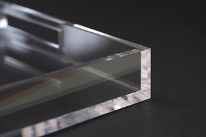 Hand-wash only • Protection: Just like fine wood or metal, surface must be protected from scratches or harmful conditions. Always use felt or rubber on the bottom of objects placed on tray. Use drink coasters to prevent clouding from spills. • Cleaning: Wipe gently with soft cotton or microfiber cloth. Spray cloth with approved acrylic cleaner. We recommend Brillianize©. Do not use window cleaning fluids, scouring compounds, gritty cloths, or strong solvents such as alcohol, ammonia, or acetone. Not intended for commercial use. Not intended for prolonged outdoor use. Avoid extreme conditions. Do not submerge.