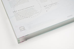 We use a particular type of printing to achieve brilliant color and permanent adhesion. By reversing the image and printing on the underside, you look through the acrylic onto the image. We use a three-layer process of primer, color, and white.