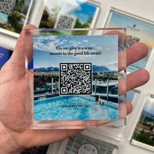 We print in 300PI resolution, offering near-perfect color matching and high-resolution photography. We design your QR codes to blend seamlessly with guest room decor and property-wide brand aesthetics.